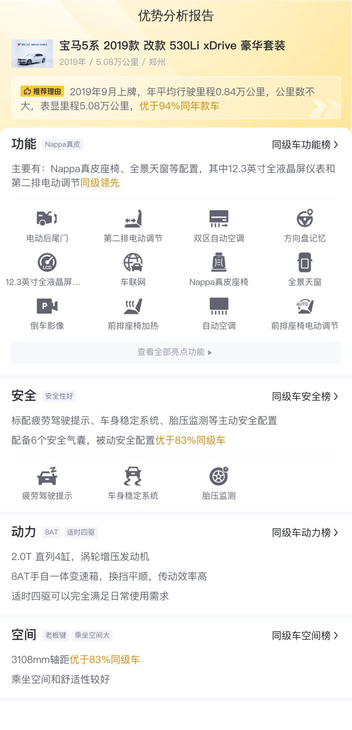 综上所述的新车含税价、用车成本、市场行情、优势分析、同款比价等数据仅供参考。在配置部分,因为二手车非标品,车辆可能会存在配置改装的情况,具体车况信息需要线下结合车辆实际情况进行综合参考。